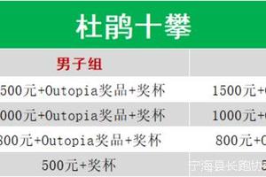 2.按枪声时间成绩取杜鹃十攀挑战组男女各前8名,奖项设置如下(奖金为税前金额,组委会代为获奖运动员缴纳个税)